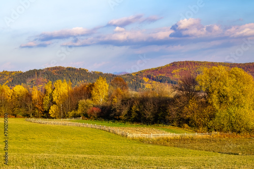 countryside, landscape, rural, forest, sunlight, hill, colourful, cloud, sky, plot, farm, farmland, fall, land, outdoors, pasture, tree, grass, autumn, agriculture, scenery, fence, field, meadow, scenic, forest, season, leaf, yellow