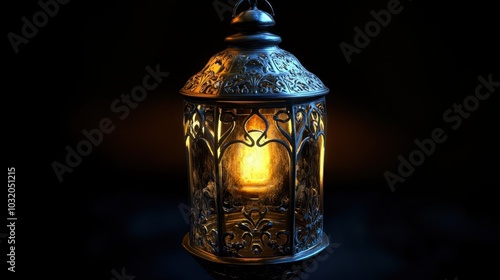 A lantern glowing brightly in the dark, illuminating the intricate details of its design.