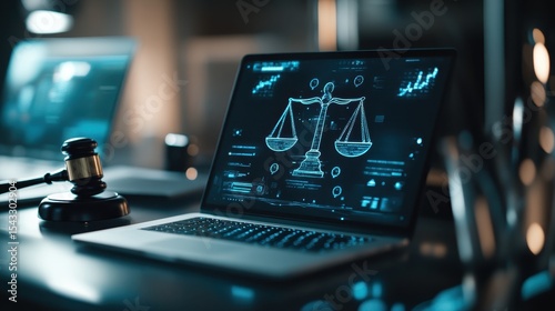 justice, law, technology, digital, legal, screen, laptop, graphic, environment, modern, scale, modernity, innovation, ethic, evening, representation, professionalism, system, order, society, structure, sharpened, 2023, balance, information, atmosphere, abstract, image, light, design, creativity, narrative, idea, future, connection, analysis, work, contemporary, visualisation