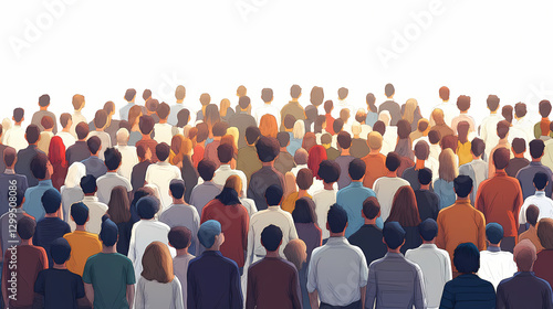 large, crowd, people, standing, closely, together, viewed, behind, diverse, range, clothing, visible, transparent, isolated, background, harmony, meadow, illustration