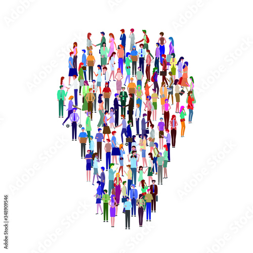 A large group of people in the form of lamps. Innovation and ideas concept. Isolated, white background. Vector illustration.