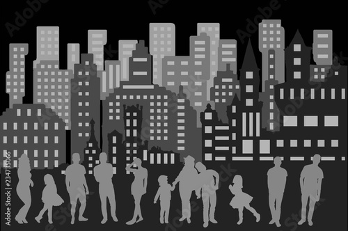 A large number of people in the city among the high-rise home