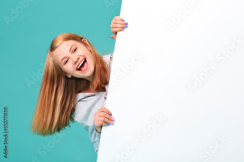 girl, banner, empty, white, poster, background, blank, isolated, showing, board, space, holding, billboard, person, paper, woman, looking, beautiful, copy, portrait, signs, young, people, studio, advertising, card, face, female, cheerful, advertisement, 1, smile, caucasian, message, happy, presentation, children, little, behind, text, copy space, school, education, peeking, turquoise, pointing, pretty, blue, schoolgirl, comment
