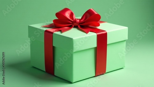 A light green present box adorned with a vibrant red ribbon and bow, a perfect symbol of gifting and celebration