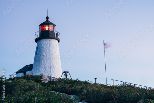 patriotic, morning, maritime, maine, lighthouse, light, to illuminate, harbor, flag, coastal, breeze, beacon, american, wind, warning, us, tall, safety, red, peaceful