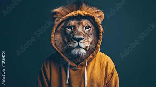 A Lion Wearing a Yellow Hoodie