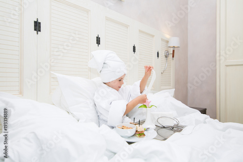 room, morning, bed, breakfast, children, lifestyle, home, children, sitting, happy, hotel, resting, health, care, up, smiling, little, childhood, good, arousing, having, young, adult, cute, style, pretty, travel, girl, enjoyment, eating, girl, sandwich, cornflake, bread