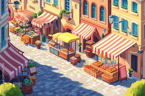 market, stall, produce, european, street, colourful, vibrant, sunny, day, fresh, food, vegetable, fruit, architecture, quaint, charming, travel, tour tourism, shopping, local, culture, traditional, urban, scenic, picturesque, seller, commerce, lifestyle, community, sidewalk, exploration, adventure, destination, city, summer, atmosphere, lively, economy, heritage, historic, alley, pedestrian, social, gathering, interaction, leisure