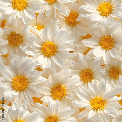 A Lot Of White Yellow Daisies or chamomile flowers - for full-frame background and seamless texture. Neural network generated image. Not based on any actual scene or pattern.
