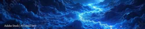 A luminous blue river of cosmic energy flows through the inky black void , astronomy, science, abstract