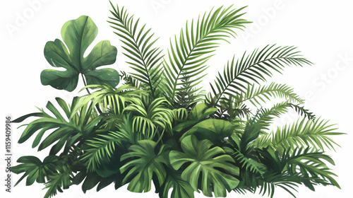 lush, green, plant, variety, leaf, including, large, leaf, look, palm, tree, bracken, illustration
