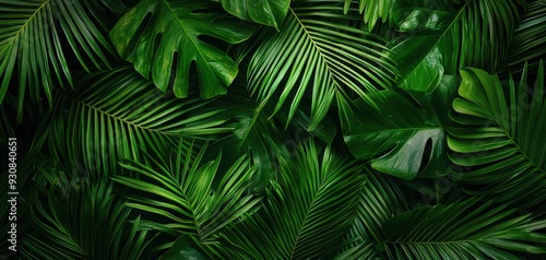 A lush, vibrant collection of green leaves showcasing exotic plant life, ideal for nature and botanical designs.