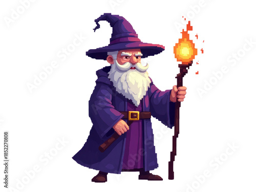 pixel, magician, magic, staff, glow, digital, fantasy, art, illustration, graphic, design, style, concept, gaming, science fiction, technology, futuristic, virtual, reality