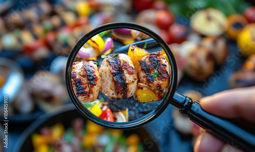 grill, meat, food, cook, roast, skewer, dinner, meal, beef, picnic, summer, bar-b-q, vegetable, fire, pork meat, steak, epicure, lunch, chicken, bar-b-q, tasty, party, onion, hot, magnifying, glasses, intricate, detail, grilled, lamb, kebob, colourful, icon, vibrant, dining, setup