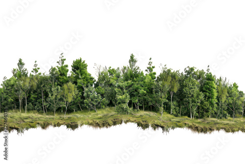A majestic treeline marking the edge of a vast, untouched wilderness,Isolated on white background