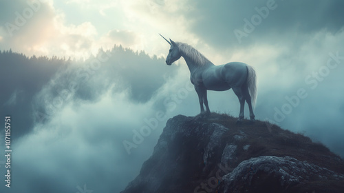 unicorn, nature, mist, mountain, dawn, magical, fantasy, wildlife, landscape, aethereal, adventure, serene, misty, enchanting, panorama, beauty, horizon, fantasy art, wilderness, calmness, iconic, fairy tale, majestic, standing, exploration, peaceful, silhouette, dreamlike, ancient, folklore, mythical, gallop, serenity, mystery, horn, vibrant, natural, storytelling, surreal, animal, captivating, morning light