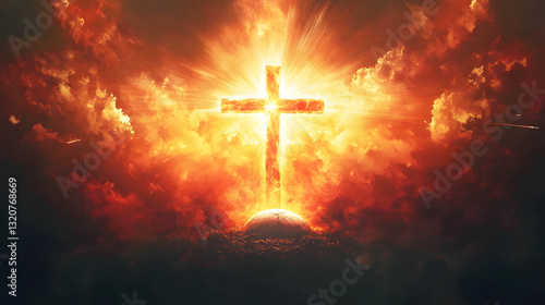 majestic, resurrection, jesus christ, radiant, glowing, cross, beam, light, heavenly, death, life, salvation, grace, peace, hope, redemption, love, spirituality, glory, faith, triumph