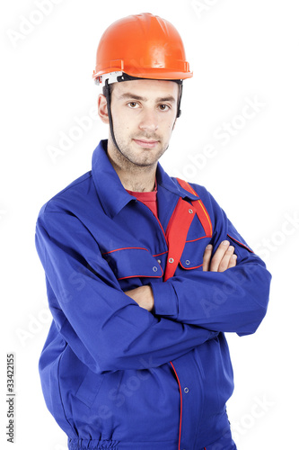 adult, background, builder, cap, caucasian, clothing, construction, contractor, dungarees, engineer, expression, garment, photogenic, happy, hat, headgear, helmet, hold, house, industrial, isolated, job, jumpsuit, looking, male, man, mechanic, object, occupation, 1, orange, overall, person, portrait, pose, protective, repairman, small, smile, standing, studio, uniform, vertical, wear, white, men at work, working, young