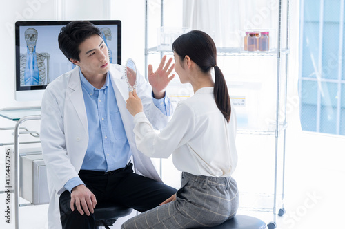 doctor, patient, mirror, consultation, clinic, beauty, face, cosmetic, man, woman, health care, communication, treatment, male, female, aesthetic, skincare, uniform, interaction, medicine, wellness, analysis, modern, asian, indoor, exam, diagnosis, discussion, care, posture, looking, medicals, equipment, confidence, trust, expert, friendly, evaluation, holding, opinion, talk, office, therapy, help, practice