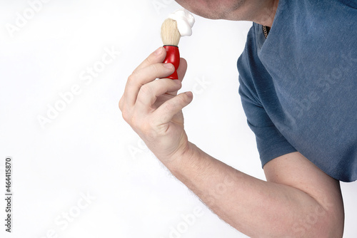 A man applies shaving foam to his face with a shaving brush