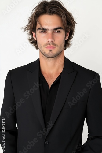 man, black, suit, shirt, wearing, jacket, young, fashionable, businessman, photogenic, business, elegant, attractive, white, style, model, people, caucasian, guy, studio, confidence, standing, background, portrait, adult, look, stylish, successful, casual attire, hair, face, success, posing, smart, modern, tuxedo, formal, bow, attaching, executive, hand, sexy, macho, groom, grey, 1, coiffure, clothing, professional