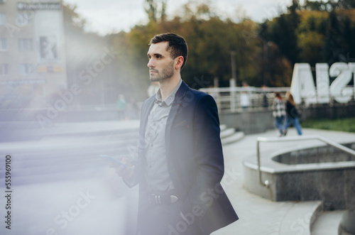 business, businessman, suit, man, young, phone, smartphone, male, technology, mobile, success, entrepreneur, adult, photogenic, work, professional, mobile phone, manager, person, corporate, modern, guy, executive, confident, successful, lifestyle, men at work, looking, portrait, city, cyberspace, standing, job, smart, people, phone, using, mobile phone, street, urban, device, outside, outdoors, message, holding, elegant, attractive, contraption