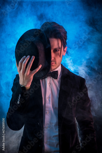magician, silk hat, hat, magic, performer, man, tuxedo, fashion, style, elegant, formal, gentleman, accessory, suit, attire, posh, black-and-white, modern, dapper, sophisticated, chic, trendy, classic, menswear, outfit, suave