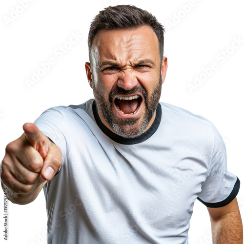 annoyed, body language, pointing, shouting, shirt, anger, camera, expression, white shirt, beard, man, bearded man