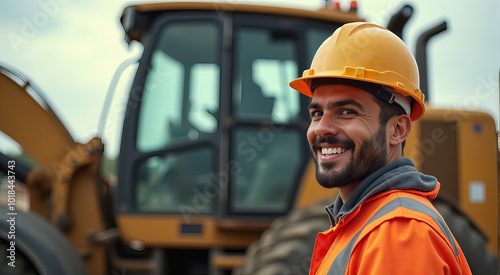 man, yellow, helmet, orange, vest, smiling, camera, standing, next, industrial, occupation, large, male, construction, person, vehicle, work, safety, site, job, men at work, builder, building, heavy, professional, hard hat, equipment, business, portrait, bulldozer, caucasian, machine, shoveling, hard, driver, backhoe, engineer, shovel, machinery, collar, operator, shoveling, earthmover, mechanic, happy, manager, three-dimensional, render, illustration