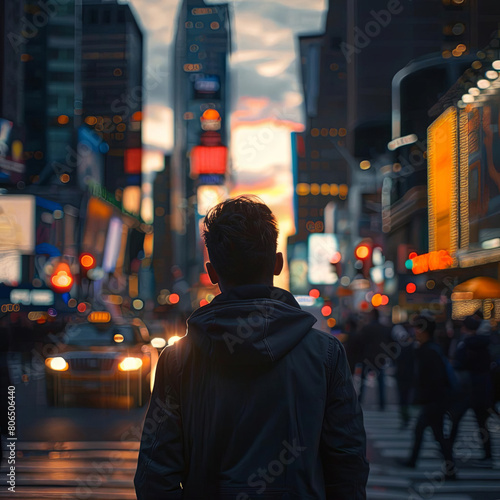 man, racked, middle, tied-up, city, street, look, light, alone, jacket, walk, dusk, lane, pace, young, rear, life, home, thinks, wait, fast, build, work, lose, crowd