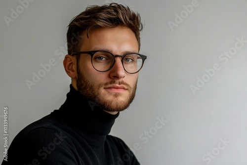 man, goggles, black, turtleneck, sweater, short, hair, beard, casual attire, style, fashion, portrait, confident, male, clothing, trendy, modern, accessory, smart, photogenic, individual, adult, urban, lifestyle