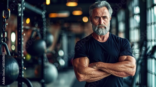 adult, man, gym, male, sport, fitness, person, lifestyle, healthy, athlete, fit, mature, caucasian, old, senior, beard, portrait, exercising, muscle, active, indoor, training, elderly, health, modern, retirement, grey, equipment, strong, physical exercise, guy, hair, strength, leisure, older, white, standing, 1, body, bodybuilding, space, young, weight, background, photogenic, sportsman, trainer, pensioner, sitting