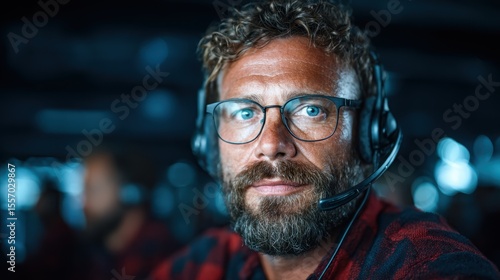 man, headset, goggles, sharpened, control, center, work, blue, focused, technology, concentration, determination, professionalism, engagement, modern, depth, teamwork, attention, dynamic, ambient, workplace, serious, operator, call, monitoring, communication, strategy, productivity, bokeh, atmosphere, present, engaged, interaction, office, support, attentive, listening, male, business, lifestyle, contemporary, emotion, intensity