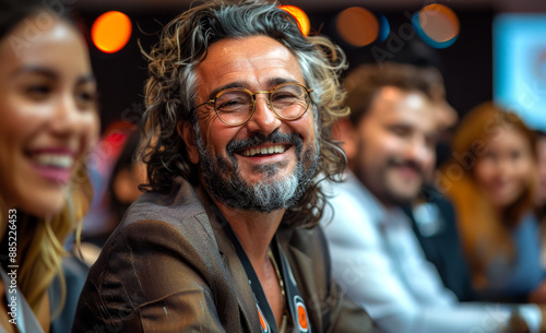 A man with glasses is smiling at the camera