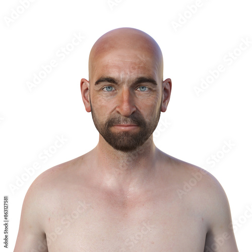 constricted, narrow, pupil, medicals, opthalmology, health care, eye, health, technology, assistance, visual, professional, concept, issue, ocular, support, science, pupil, ophrys, condition, three-dimensional, illustration, caucasian, male, man, one person, mature adult, 40s, white background, isolated, bald