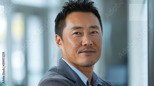 man, businessman, professional, suit, hair, confident, short, blue, dark, modern, office, light, attire, shirt, portrait, smart, looking, side, window, formal, background, indoor, blurred, photograph, demeanor, image, sunlight, well-groomed