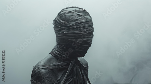 one person, photo, problem, people, adult, adults only, one man only, tied up, africa, australia, displeased, head shot, horizontal, memory, sorrowful, skittish, vertical, young adult, color image, copy space, gag, history, trapped, brown hair, cable, closeup, forbidden, front view, german, refugee, rope, social issue, studio shot, casual clothes, decoration, black background, african ethnicity, past