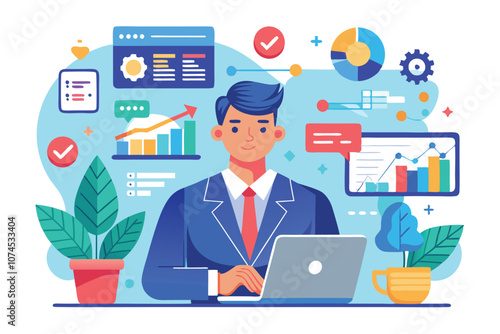 manager, planning, monitoring, illustration, laptop, office, datum, visualisation, chart, graph, productivity, analysis, teamwork, business, concept, organisation, digital, workspace, strategy, communication, creativity, growth, technology, innovation, leadership, professional, development, solution, idea, sharpened, result, success, research, information, display, efficiency, time management, goal, progress