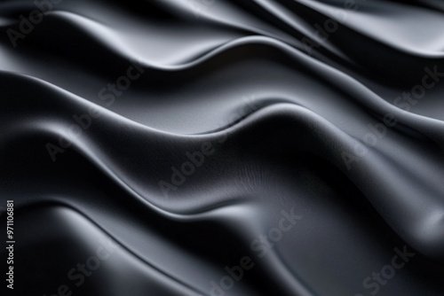 A matte black background with smooth, curved lines casting soft shadows. The lines form an abstract wave pattern, gently undulating across the surface, creating a serene and harmonious design with a