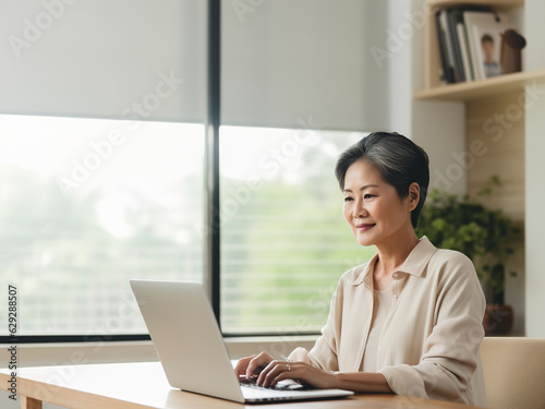 mature, asian, woman, home office, laptop, efficiency, life events, expertise, adaptability, productivity, technology, connection, sharpened, concentration, independence, empowerment, determination, skill, wisdom, professional, telecommuting, online, cyberspace, communication, flexible, time management, career, cognition, resourceful, confidence, senior, experienced, workspace, autonomy, innovation