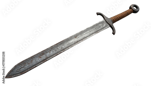 A medieval sword with a detailed blade and hilt isolated on transparent background, evoking a sense of history, power, and craftsmanship from a bygone era