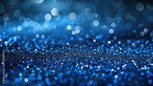 A mesmerizing blue glittering sparkle background with bokeh lights, perfect for festive and celebratory themes.