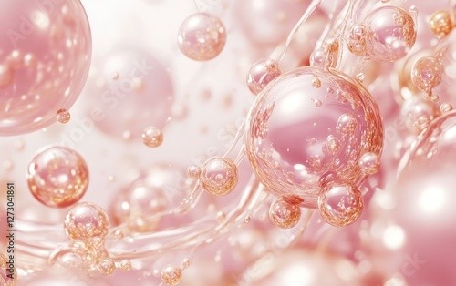 A mesmerizing illustration of pink and gold pearls gracefully floating in a serene aquatic environment.