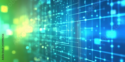 A mesmerizing kaleidoscope of blues and greens forms an intricate lattice of intersecting lines and scattered dots on a captivating abstract digital canvas