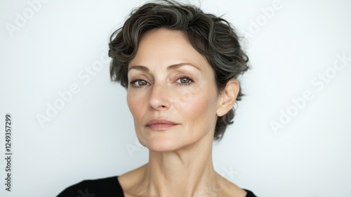 woman, middle-aged, curly hair, portrait, confident, beauty, closeup, smiling, casual attire, female, person, people, happy, joy, expression, attractive, cheerful, isolated, studio, face, looking, elegant, natural, healthy, lifestyle, fashion, adult, mature, skin, eye, hair, happiness, positive, serene, calm, stylish, modern, closeup, friendly, relaxed, emotion, graceful, charming, soft, light, neutral, simplicity, elegance