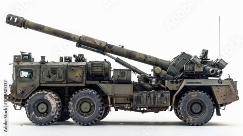 military, vehicle, artillery, gun, combat, transport, armored, wheeled, tactical, defense, warfare, equipment, machinery, terrain, firepower, mobility, operation, logistic, camouflage, heavy, technology, engineering, battlefield, strategy, assault, support, deployment, precision, robust, design, powerful, system, mechanic, crew, field, load, range, operated, command, safety, dependability, construction, performance, duty, mission, strength, innovation