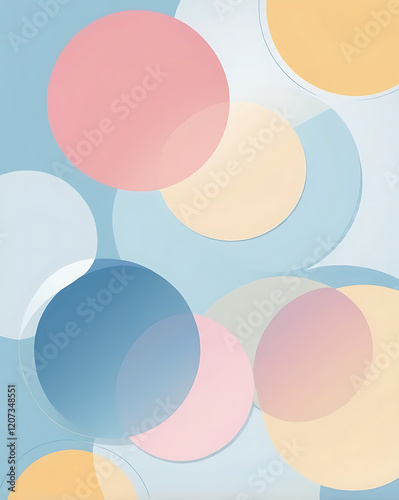 A minimalist background featuring overlapping translucent circles in pastel shades of yellow, blue, and pink, with a smooth, soft texture