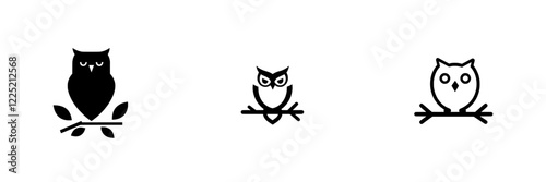 A minimalist depiction of an owl sitting on a branch, ideal for logos and emblems
