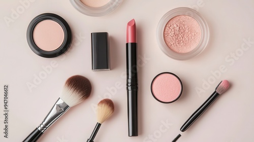 cosmetic, lipstick, make-up, brush, powder, beauty, skincare, minimalist, arrangement, personal, care, fashion, reddening, foundation, highlighter, tool, aesthetic, modern, flat, lay, glam, colours, palette, finish, daily, routine, elegance, simplicity, grooming, lifestyle, trend, essential, product, application, style, sophistication, chic, clean, neutral, feminine, artistry, compact, blend, generative, ai