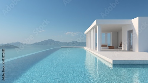 sea, column, geometric, mountain, turquoise, white, architecture, landscape, glasses, serene, exterior, villa, contemporary, coast, blue, sky, water, modern, ocean, minimalist, relaxation, pool, horizon, luxury